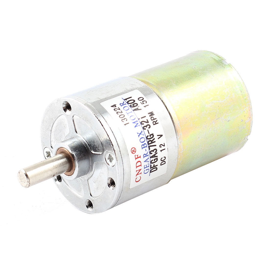 Product Name DC Geared Motor Model DFGA37RG-32i Rated Voltage DC 12V Output Speed 150RPM Mounting Screw Hole Diameter 2.2mm/0.09" Gearbox Size 37 x 24mm/1.5" x 0.94"(D*H) Shaft Size 6 x 15mm/ 0.24" x 0.59"(D*L) Body Lenght 58mm/ 2.3" Main Color Silver Tone, Bronze Tone Material Metal,Magnetic Net Weight 190g Package 1 x DC Geared Speed Reduce Motor - Reviews