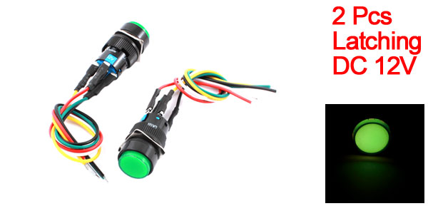 DC12V 16mm SPDT 1NO 1NC Latching Control Green Lamp Car Push Button Switch 2Pcs
