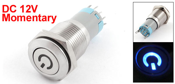 DC12V 16mm SPDT Momentary Blue LED Light Stainless Steel Push Button Switch