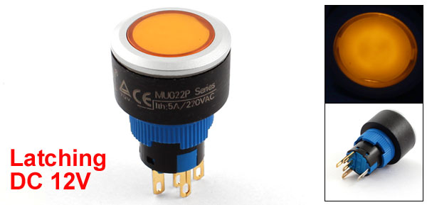 Item Name Push Button Switch Model MU22P/F11Z Contact Type SPDT(1NO 1NC) Action Type Latching Type Rating AC 220V 5A Light Voltage DC 12V Light Color Yellow Pin Number 5 Button Cap Dia 18mm/0.71" Mounting Thread Dia. 16mm/ 0.63" Total Size 25 x 33mm/1" x 1.3"(D*H) Material Plastic, Electronic Parts Color Yellow, Black Weight 12g Package Content 1 x Push Button Switch - Reviews