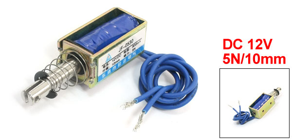 Product Name DC Solenoid Electromagnet Model JF-0530 Rated Voltage DC 12V Type Pull Rated Current 300mA Force & Stroke 5N/10mm