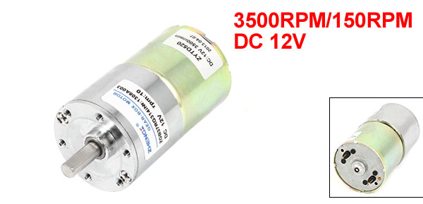 Product Name DC Gear Motor Rated Voltage DC 12V Motor No-load Speed 3500RPM Gear Box No-load Speed 150RPM Reduction Ratio 3500RPM/150RPM Pin Number 2 Gear Box Shaft Size 15mm x 6mm/0.6" x 0.24"(L*D) Motor Size 33 x 36mm/1.3" x 1.4"(L*D) Gear Box Size 24 x 37mm/ 1" x 1.4"(L*D) Total Length 83mm/3.2" Material Metal Weight 190g Package 1 x DC Gear Motor - Reviews