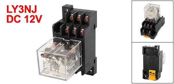 DC12V 35mm DIN Rail Coil Power Relay 11-Pin LY3J 10A AC 240V DC 28V w Socket