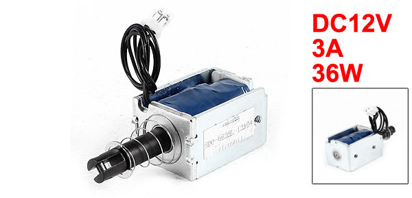 Product Name DC Solenoid Electromagnet Rated Voltage DC12V Rating Current 3A Power 36W Type Pull Force 160-700g Stroke 1-6mm Body Size 2 x 2.7 x 1.5cm/0.8" x 1.1" x 0.6"(L*W*T) Plunger Bar Size 30 x 6mm/1.2" x 0.24"(L*D) Screw Hole Diameter 2.2mm Cable Length 10cm/3.9" Material Metal, Electronic Parts Weight 44g Package Content 1 x DC Solenoid Electromagnet - Reviews
