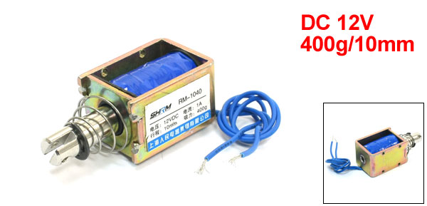Product Name DC Solenoid Electromagnet Model RM-1040 Rated Voltage DC 12V Type Pull Rated Current 1A Force& Stroke 400g/10mm