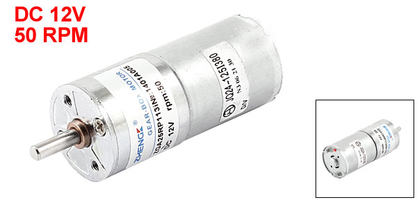 Product Name DC Geared Motor Rated Voltage DC 12V Speed 50 RPM Shaft Diameter 4mm/ 0.16" Shaft Length 12mm/0.47" Motor Part Size 24 x 31mm/0.94" x 1.2"(D*H) Overall Size 25 x 66mm/ 1" x 2.6" (D*H) Main Color Silver Tone Material Metal Weight 89g Package 1 x DC Geared Motor - Reviews