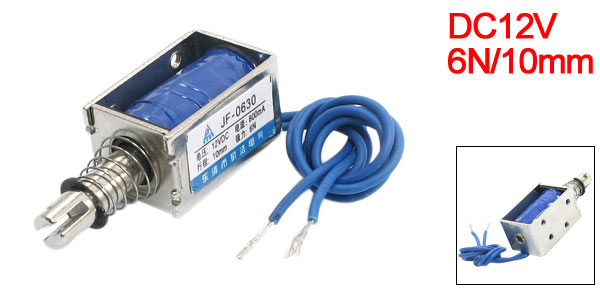 Product Name DC Solenoid Electromagnet Model JF-0630 Rated Voltage DC 12V Type Pull Rated Current 800mA Force & Stroke 6N/10mm