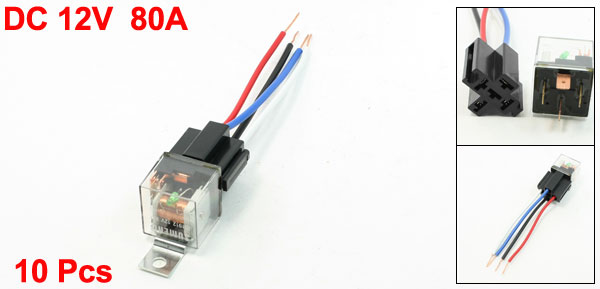 Wire Socket Size 3.3 x 2.8 x 2.8cm/1.3" x 1.1" x 1.1'" (L*W*T) Cable Length 11.5cm/4.5" Mounting Hole Dia 6.5mm/0.26" External Material Metal, Plastic, Electric Parts Main Color Black, Clear Net Weight 544g Package Content 10 x Relay
