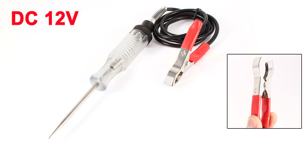 Product Name Car Circuit Voltage Tester Material Plastic, Metal Voltage DC 12V Body Size (Approx) 190 x 27mm/ 7.5" x 1" (L*D) Cable Length(Approx.) 107cm/ 42" Handle Color Clear, Black Net Weight 92g Package Content 1 x Car Circuit Voltage Tester