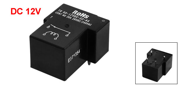 DC12V Coil Voltage 4-Pin SPST Normal Open Power Relay Black