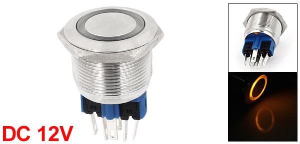 DC12V Orange LED Angel Eye SPDT Locking Stainless Steel Push Button Switch 22mm