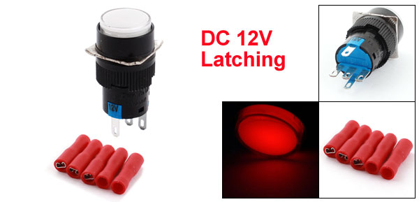 Item Name Round Head Push Button Switch w Crimp Connector Model LA160-16A Contact Type SPDT(1NO 1NC) Action Type Latching Pin Number 5 Voltage, Current AC 250V 5A Light Voltage DC 12V Thread Dia 16mm/0.63" Total Size(Not Included Pin) 18.5 x 18 x 33mm /0.73" x 0.71" x 1.3" (L *W *H) Light Color White External Color Black, Red, White Material Plastic, Metal Net Weight 11g Package Content 1 x Round Head Push Button Switch