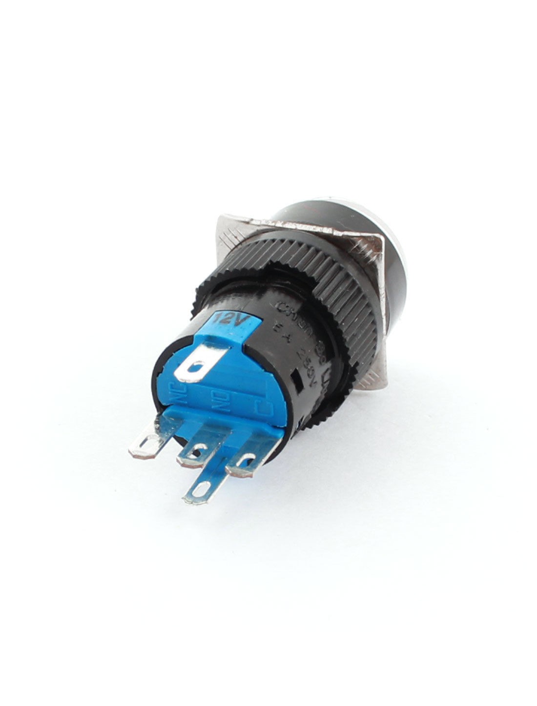 DC12V White Light 16mm SPDT Locking Round Push Button Switch w Female Connectors