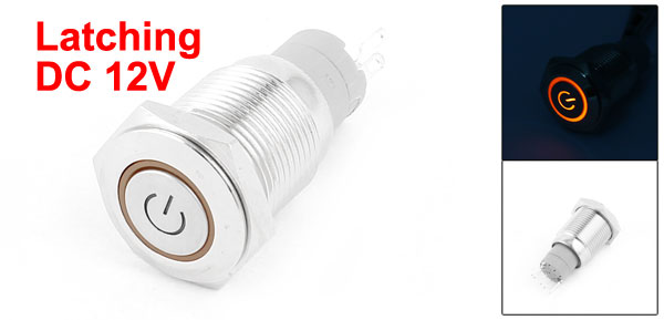 DC12V Yellow LED Power Indicator SPDT Latching Metal Push Button Switch 16mm