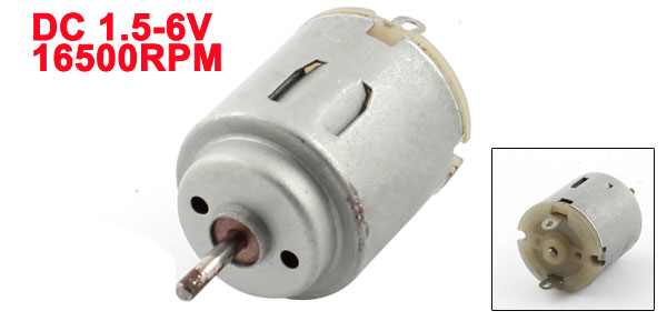 Product Name DC Motor Type 140 Motor Rated Voltage DC 1.5-6V Speed(no load) 16500RPM Body Size 21 x 29mm /0.83" x 1.2"(D*L) Shaft Size 2 x 8.5mm /0.08" x 0.33"(D*L) Pin Number 2 Main Color Gray, Silver Tone Material Metal Weight 20g Package 1 x DC Motor - Reviews