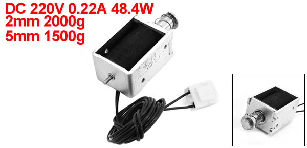 DC220V 0.22A 48.4W Pull Type Solenoid Electromagnet 2mm/2000g 5mm/1500g