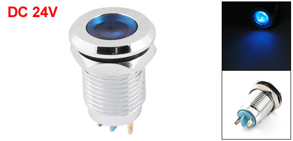 DC24V 12mm Panel Mount Stainless Steel Blue LED Signal Indicator Light