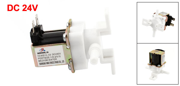 Product Name Solenoid Water Valve Model YCWS10-03 Use Fluid Air, Water Rated Voltage DC24V Nominal Bore 10mm Port Dia Outer Dia:6mm/ 1/4"