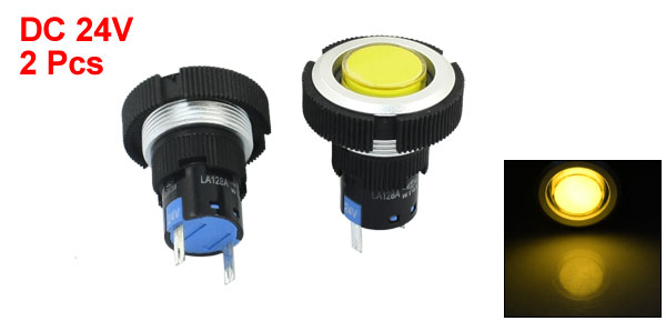DC24V 22mm Thread Plastic Yellow Signal Indicator Light Pilot Lamp 2Pcs