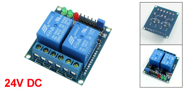 Product Name Relay Module Model SRD-24VDC-SL-C Number of Channels 2 Coil Voltage 24V DC Load 10A, AC 250V/125V, DC 30V/28V Size 4.5 x 4 x 2cm/1.8" x 1.6" x 0.78"(L*W*H) Material PCB Color Blue Weight 37g Package 1 x Relay Module - Reviews
