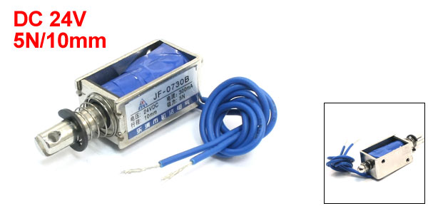 Product Name DC Solenoid Electromagnet Model JF-0730B Rated Voltage DC 24V Type Pull Push Rated Current 300mA Force & Stroke 5N/10mm