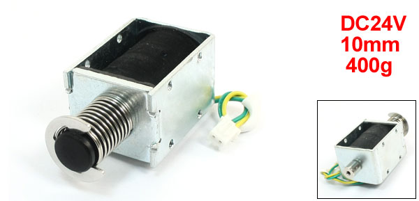 DC24V 30W Open Frame Solenoid Electromagnet w Spring Plunger 10mm 400g