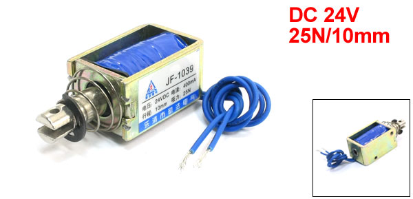 Product Name DC Solenoid Electromagnet Model JF-1039 Rated Voltage DC 24V Type Pull Rated Current 400mA Force & Stroke 25N/10mm
