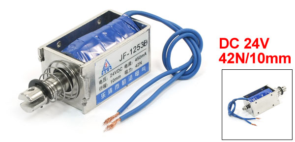 Product Name DC Solenoid Electromagnet Model JF-1253B Rated Voltage DC 24V Type Pull Push Rated Current 450mA Force& Stroke 42N/10mm