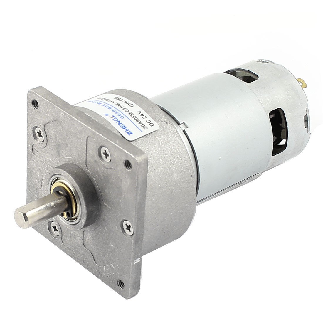 Product Name DC Geared Motor Rated Voltage DC 24V Motor Speed 4600 RPM Gearbox Speed 150RPM Shaft Diameter 8mm/ 0.31" Shaft Length 18mm/0.6" Motor Part Size 44 x 65mm/1.7" x 2.6"(D*H) Overall Size 37 x 78mm/ 1.46" x 3.1" (D*H) Base Size 60 x 60mm/2.4" x 2.4"(L*W) Install Screws Dia 3.2mm/0.13" Total Height 130mm/5.1" Main Color Silver Tone Material Magnetic,Metal Weight 333g Package 1 x DC Geared Motor - Reviews