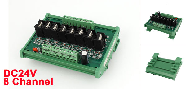 DC24V 8 CH 35mm 15mm Mounting PLC Relay Output PCB Circuit Board Module Green