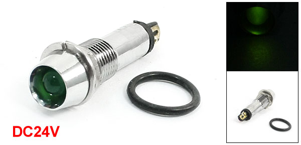 DC24V 8mm Power Illuminated Green LED Signal Indicator Pilot Lamp