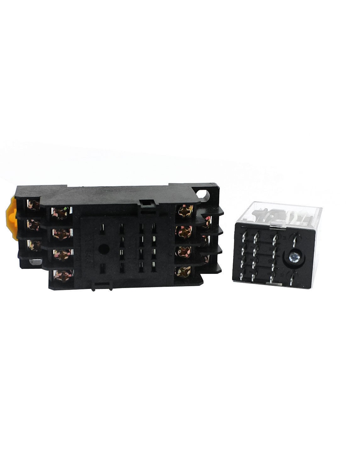 DC24V Coil 4PDT 14 Terminals 4NO 4NC DIN Rail Electomagnetic Relay w Socket