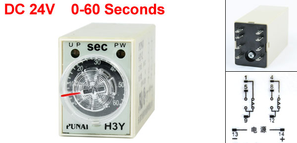 DC24V DPDT Knob Control 60s Seconds Time Delay Relay H3Y-2 8 Pin