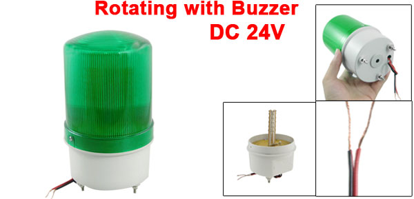 Product Name Industrial Signal Light Type Rotating with Buzzer Rated Voltage DC 24V Light Color Green Material Plastic, Electronic Parts Thread Diameter 4mm / 0.16" Wire Length 16cm / 6.3" Overall Size(Approx.) 9.4 x 17cm/ 3.7" x 6.7"(Dia.*H) Body Color Green Net Weight 202g Package Content 1 x Industrial Signal Light - Reviews