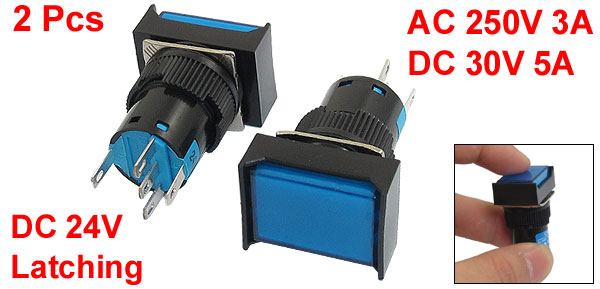 DC24V Lamp 1NO 1NC Latching Blue Cap Rectangular Push Button Switch 2Pcs