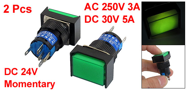 Lamp Voltage DC 24V Cap Color Green Switch Color Black, Green Pin Number 5 Button Size 20 x 15mm/ 0.8" x 0.59" (L*W) Mounting Thread Dia. 16mm/ 0.63" Total Size 24 x 18 x 40mm/ 0.94" x 0.7" x 1.6"(L*W*H) Material Plastic, Electronic Parts Weight 17g Package Content 2 x Push Button Switch - Reviews