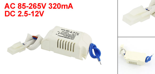 DC2.5-12V 320mA Output Driver Power Supply for 3 x 1W LED Strip Light