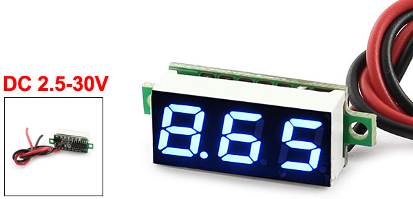 DC2.5-30V LED Display Blue Digit Voltage Measuring Meter Voltmeter Gauge w Cable