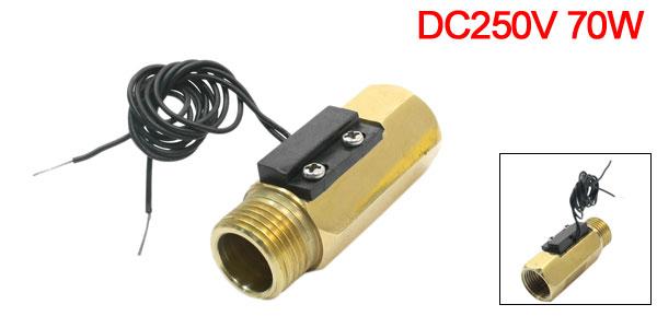 Product Name Water Flow Switch Model SEN-CL21F Type Magnetic Max Switch Voltage DC250V Max Contact Rating 70W Max Switch Current 0.5A Outer Thread Diameter 21mm/ 1/2PT Inner Thread Dia. G1/2 Total Length 62mm/ 2.4" Cable Length 33cm/ 13" Main Material Copper Color Gold Tone, Black Weight 130g Package Content 1 x Water Flow Switch - Reviews