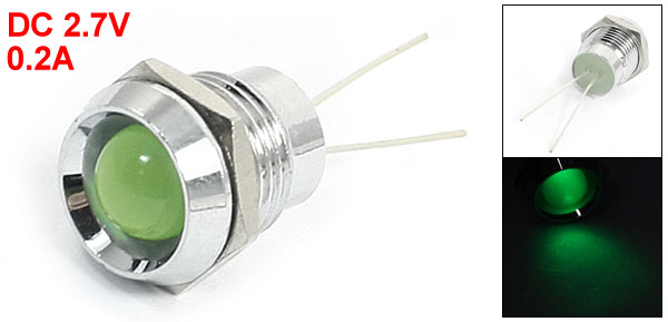 Product Name LED Indicator Pilot Light Voltage & Current DC 2.7V, 0.2A Pin Number 2 Light Color Green Thread Diameter 12mm / 0.47" Material Plastic, Electric Components, Metal Size 14 x 38mm / 0.55" x 1.5"(D*H) Weight 7g PakcageContent 1 x LED Indicator Pilot Light - Reviews