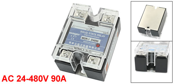 Product Name Solid State Relay Control DC 3-32V Output AC 24-480V 90A 50/60Hz Screw Terminal 4 Phase 1 Fixing Hole Dia 4.5mm/0.14" Fixing Center Distance 50mm/2" Size (Approx.) 59 x 45x 32mm/ 2.4" x 1.8" x 1.3"(L*W*T)
