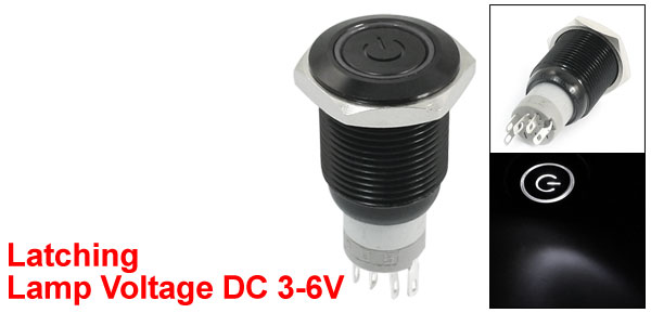 Item Name Push Button Switch Operation Type Latching Type LED Type Angel Eye LED Contact 1NO 1NC Pin Number 5 Head Design Flat Head Lamp Voltage DC 3-6V Switch Rating AC250V, 5A LED Color White Thread Diameter 16mm/0.63" Total Size 38 x 19mm/1.5" x 0.75"(L*Max.W) Material Plastic, Metal, Electric Parts Housing Color Black Net Weight 10g Package Content 1 x Push Button Switch - Reviews