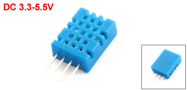 Product Name Digital Temperature Humidity Sensor Working Voltage DC 3.3-5.5V Chip DHT11 U1 20-95%RH(±5%RH) U2 0-50°C (±2°C) Pin Number 4 Pin Size 0.5 x 7mm(D*L) Pin Pitch 2.5mm Total Size 3.1 x 1.4cm/1.2" x 0.55"(L*W) Materials Plastic, Metal Main Color Blue Net Weight 2g Package Content 1 x Digital Temperature Humidity Sensor - Reviews