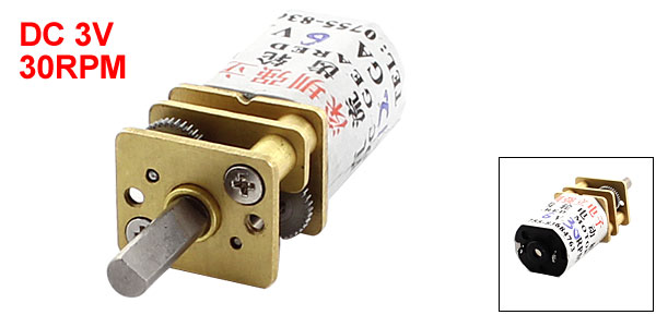 Product Name DC Geared Motor Rated Voltage DC 3V Output Speed 30RPM Pins 2 Shaft Size 2.5 x 9mm/ 0.1" x 0.35"(L*W) Motor Part Size 16 x 12 x 10mm/ 0.63" x 0.47" x 0.4"(L*W*T) Total Length(Approx.) 35mm/ 1.3" Material Metal, Electronic Parts Color Silvery Gray, Gold Tone Weight 10g Package Content 1 x DC Geared Motor - Reviews