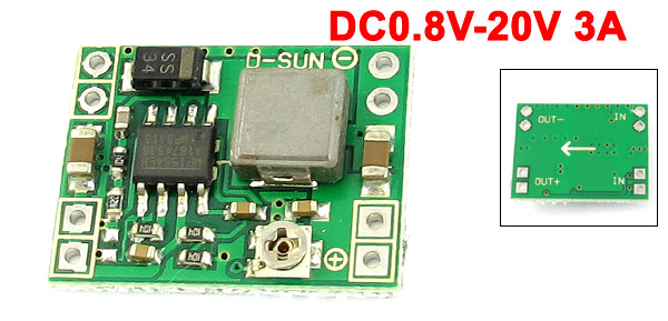 Product Name Step-Down Power Module Input DC 4.5V-28V Output DC 0.8V-20V Output Current(Max.) 3A Total Size 22 x 17 x 4mm /0.87" x 0.67" x 0.16"(L*W*H) PCB Board Thickness 1mm/0.04" Housing Material Plastic Color Black Weight 3g Package Content 1 x Step-Down Power Module - Reviews