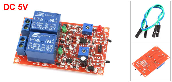Product Name Thermal Sensor Relay Module Model SRD-05VDC-SL-A Channel Number 2-CH Working Voltage DC 5V Load Voltage AC250V/125V DC30V/28V, 10A Total Size 67 x 38 x 17mm/ 2.6" x 1.5" x 0.67"(L*W*H) Pin Header Wire Connector Length 20cm/ 7.9" Material Plastic, Electronic Part Main Color Red, Blue Net Weight 33g Package Content 1 x Thermal Sensor Relay Module - Reviews