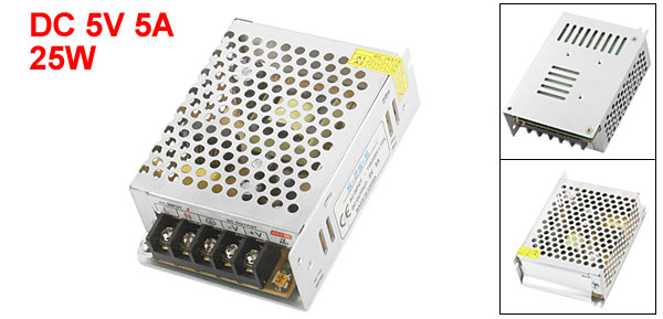 DC Output DC 5V, 5A Power 25W Terminal Quantity 5 Total Size 111 x 77 x 37mm/ 4.4" x 3" x 1.5" (L*W*T) Case Material Metal Main Color Silver Tone Weight 541g Package Content 1 x Switching Power Supply - Reviews