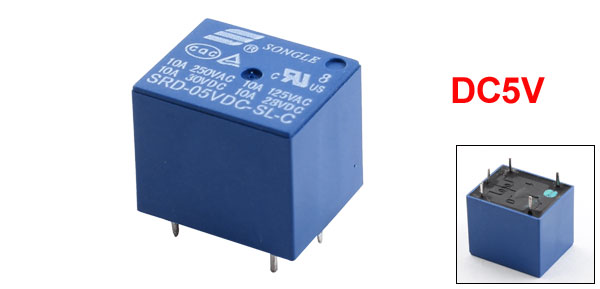 Product Name Power Relay Model SRD-05VDC-SL-C Coil Voltage DC 5V Pin Quantity 5 Pin Load Capacity AC 125V/250V 10A