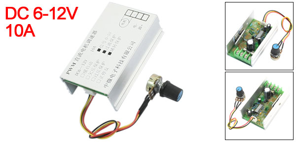 Product Name Motor Driver Speed Controller Input Voltage DC 6-12V Rated Current 10A Cut-Off Current 12A Modulation Type PWM Fuse Current 15A Control By B10K Potentiometer Size 85 x 50 x 27mm/3.3" x 2" x 1.1"(L*W*H) Wire Length 21cm/ 8.3" Material Metal, Aluminum, PCB Main Color Black, Silver Tone, Green Wieght 85g Package Content 1 x Motor Driver Speed Controller - Reviews