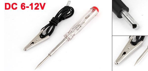 Product Name Car Voltage Tester Voltage Tester Range DC 6-12V Material Metal, Plastic Wire Length 84cm/33" Tester Size 13.5 x 1.6cm/5.3" x 0.63" (L*W) Color Clear, Red, Silver Tone